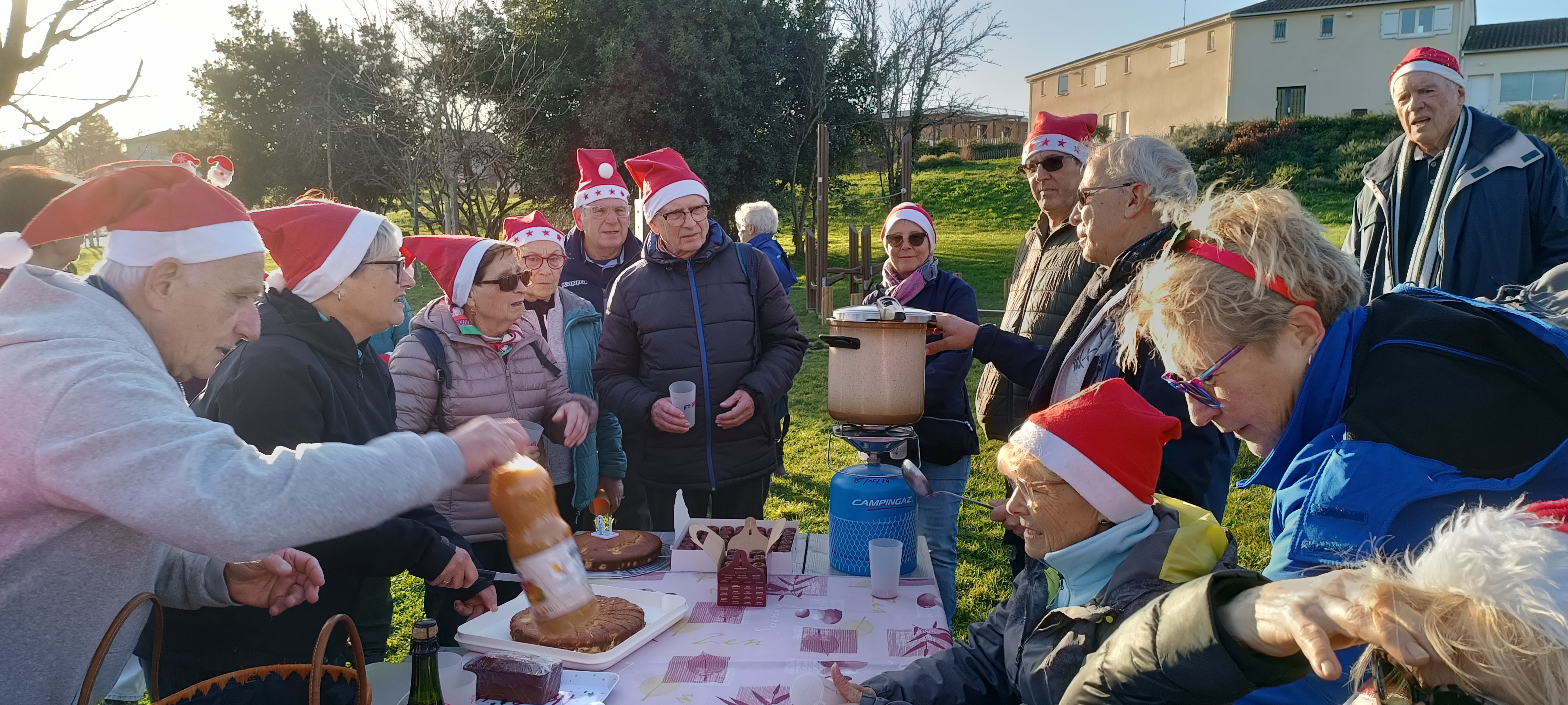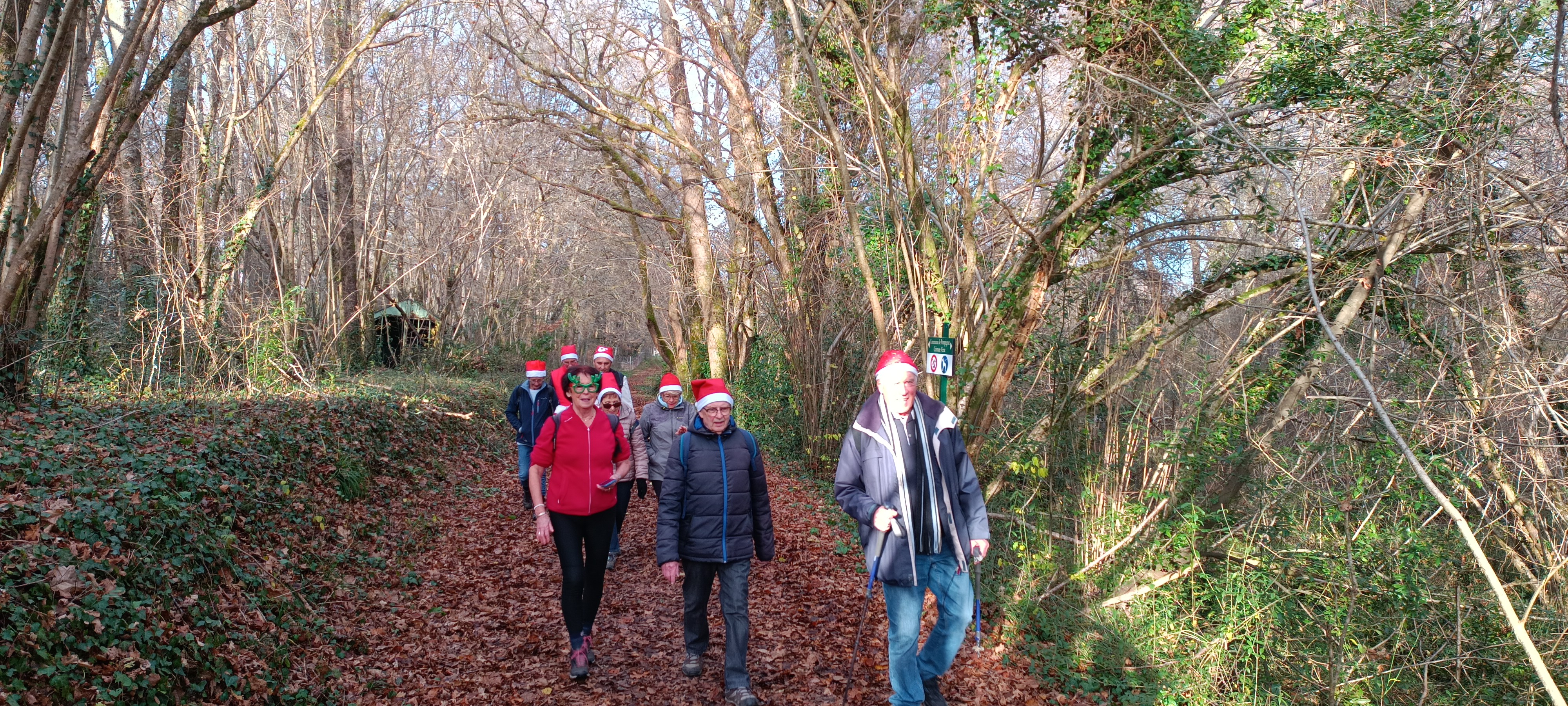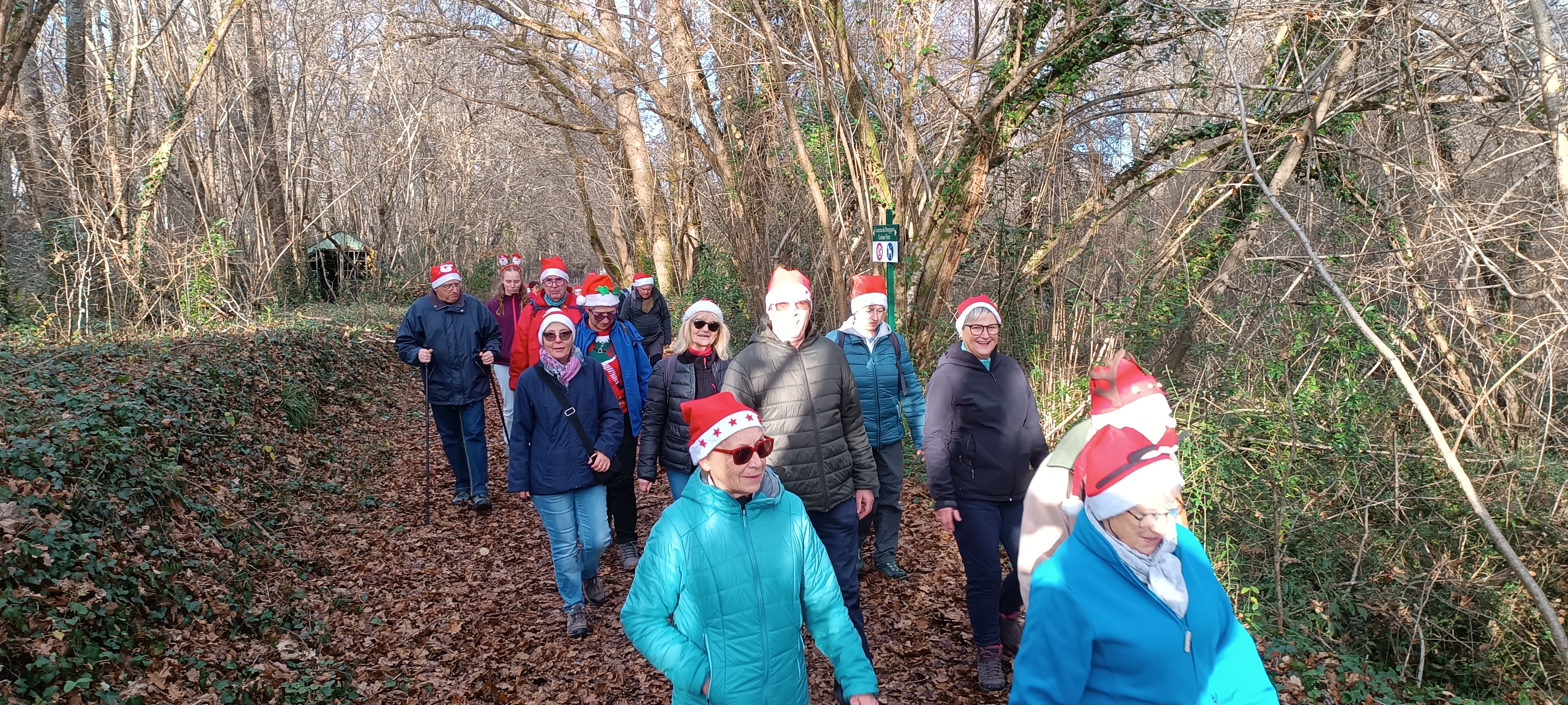 Notre dernière marche était l’occasion de faire un clin d’œil a NOEL , tout le monde avait mis un bonnet de père Noël pour faire un petit tour de POMPIGNAC.