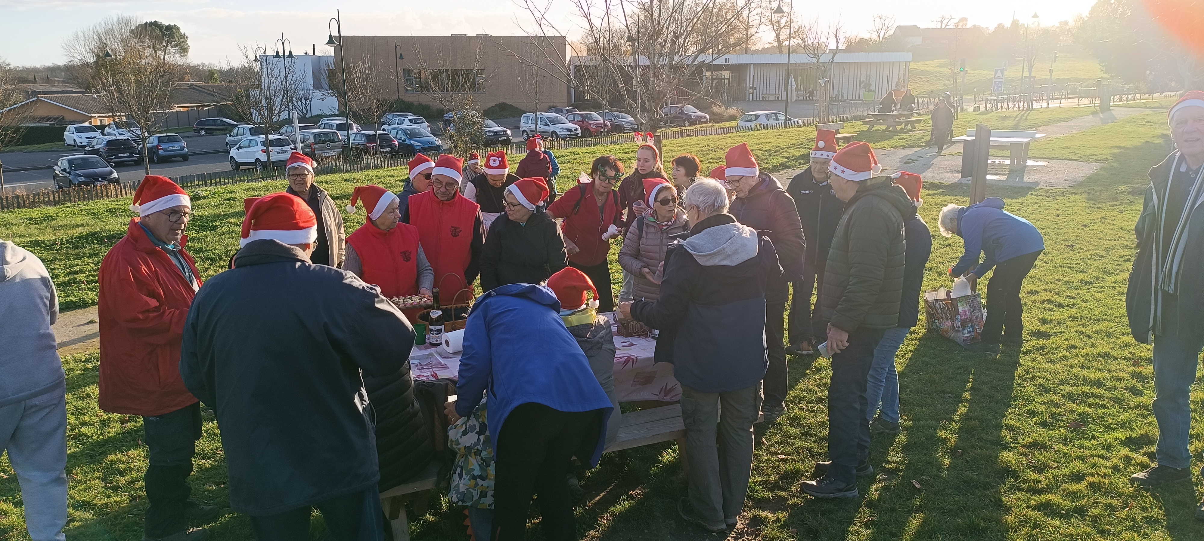 Nous avons terminé sur l’aire de jeu en face de la maternelle pour déguster un bon vin chaud et gâteaux et chocolats.
