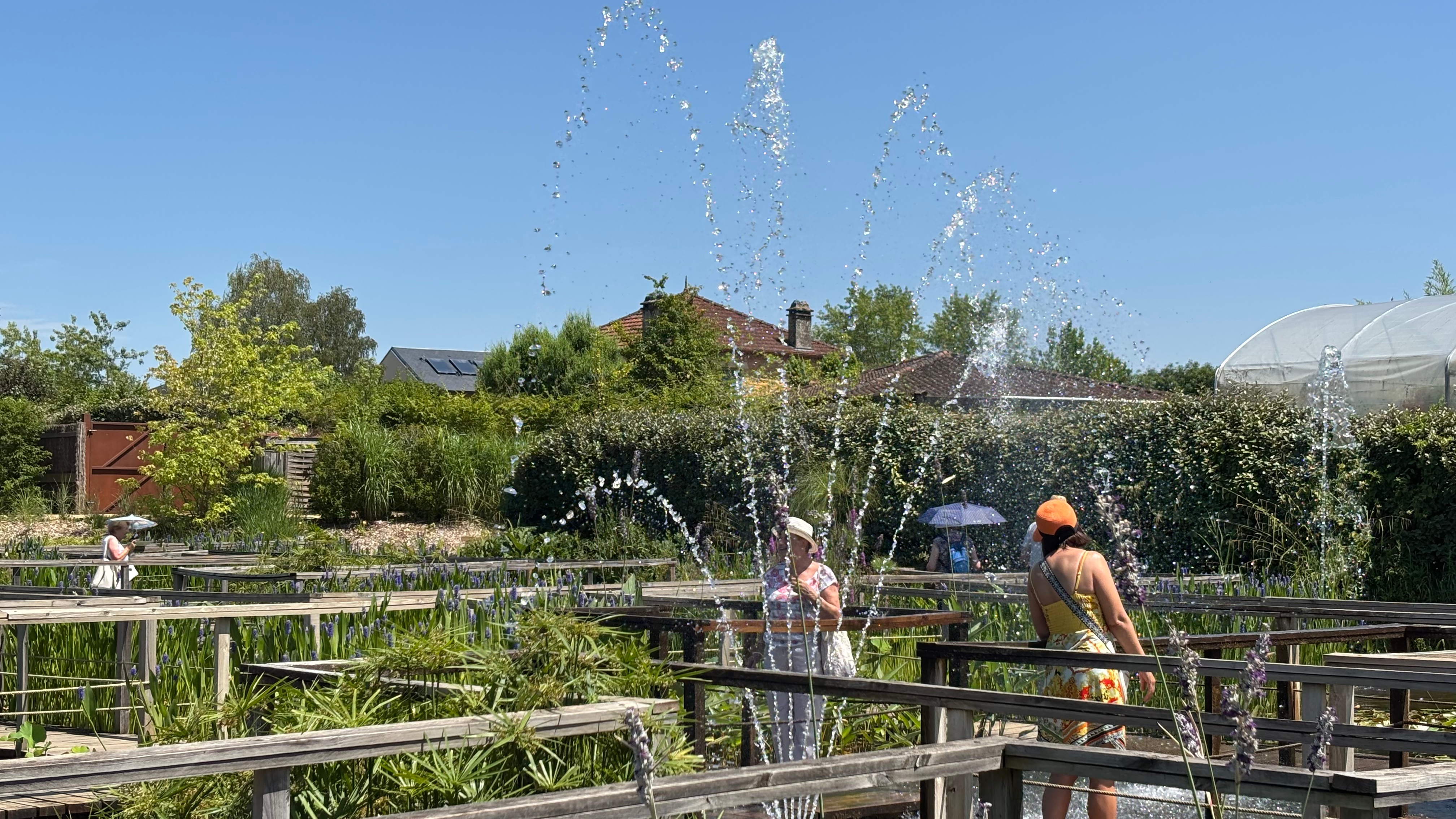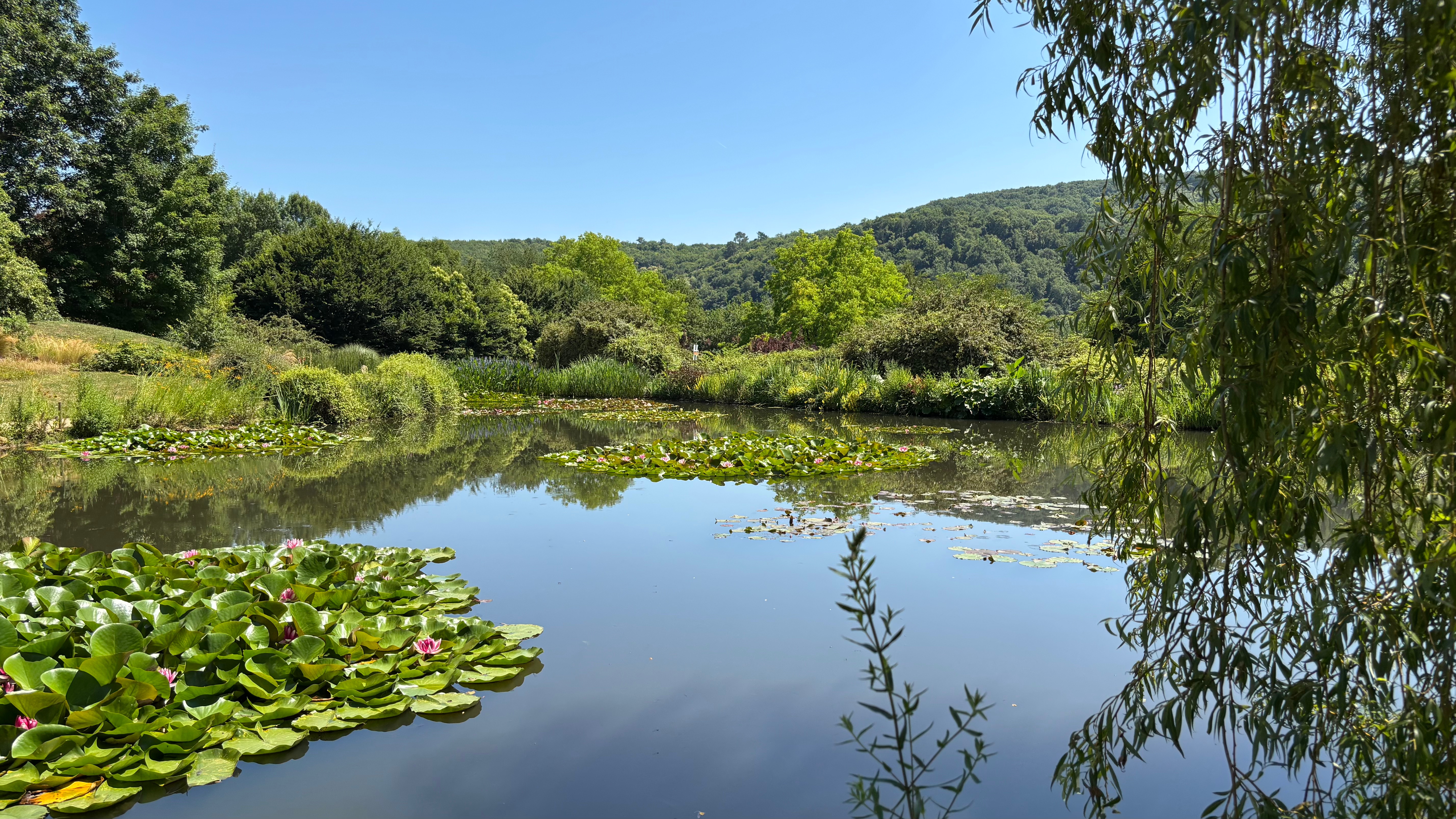Après un bon repas à L’ AUBERGE DU COLOMBIER de LA ROQUE-GAGEAC nous partons pour sillonner les JARDINS D’EAU DE CARSAC sous une chaleur accablante presque insupportable mais le petit circuit au milieu de tout ces points d’eau avec des cascades ,des nénuphars et beaucoup de verdure et quand même très agréable.