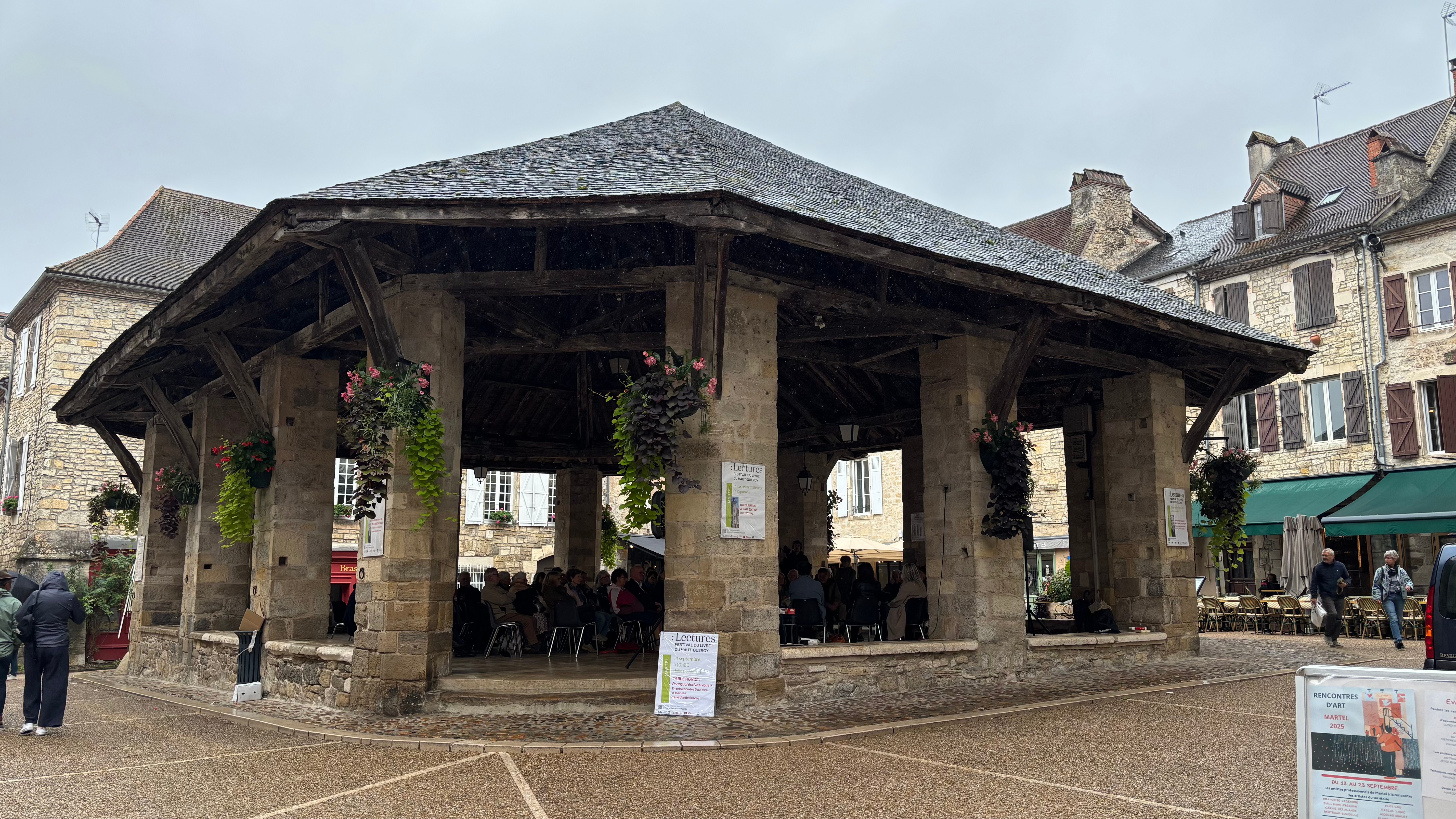 Nous avons ensuite visité la petite ville de MARTEL .Visite gâchée par la pluie et c’est dommage car c’est une très belle ville avec énormément de caractère, belles maisons en pierre , petite halle et des ruelles étroites. Une halte s’imposait pour le repas avec des produits locaux où l’étage nous était réserve .