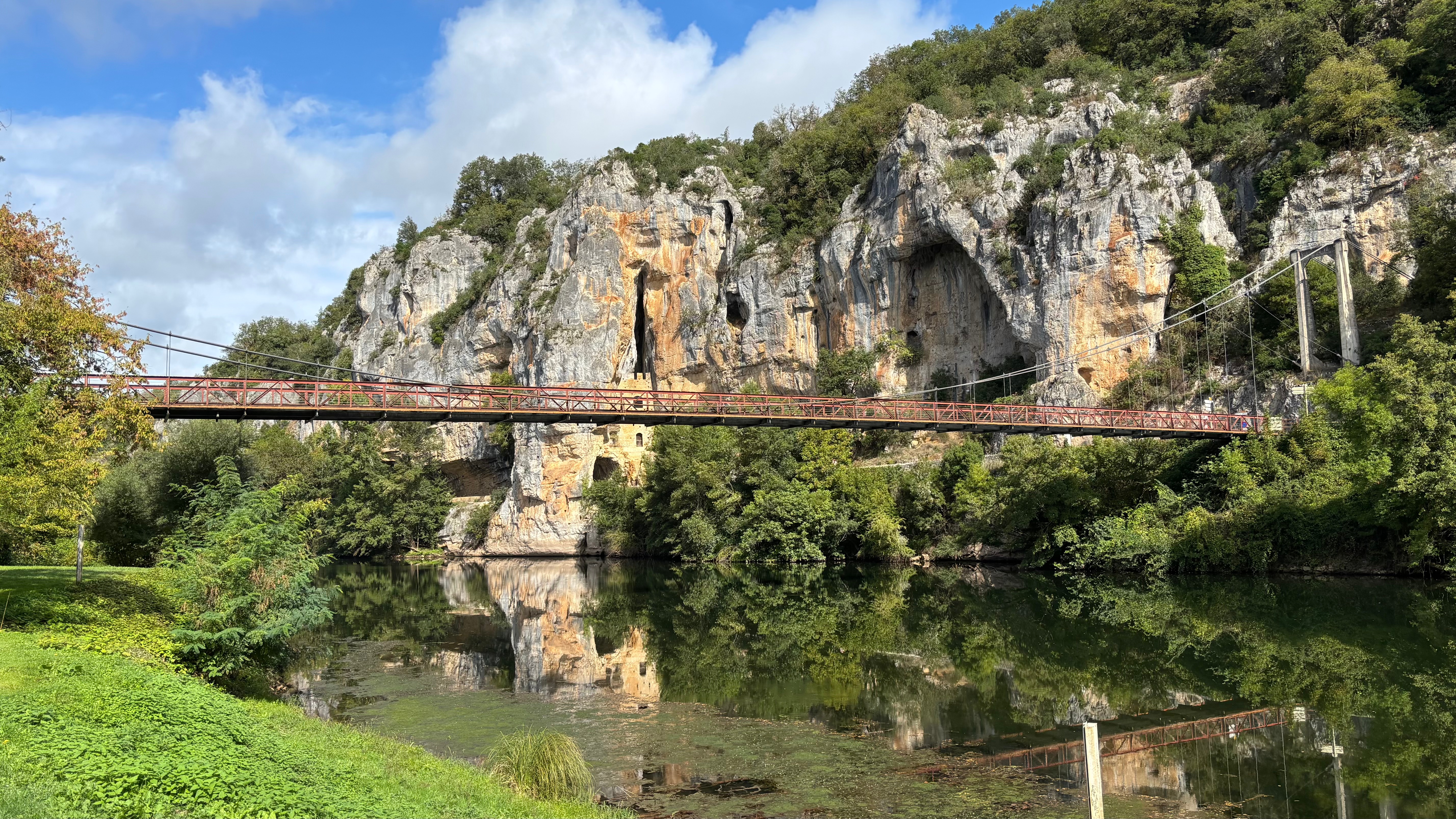 Une première partie plate où nous parcourons le chemin de halage qui servait pour tirer les gabarres avec des animaux. Très beaux paysages le long du LOT avec une l’écluse du GANIL et la falaise creusée sur 300 mètres de long où nous nous trouvons devant les sculptures de MONNIER artiste toulousain. Nous pique niquons tous ensemble a BOUZIES dans la bonne humeur. Pour le retour ils sont quatre à revenir par le même chemin car moins difficile, les autres me suivent pour un retour par les hauteurs avec de grosses côtes pour arriver tout en haut du village de SAINT CIRQ LAPOPIE . Le groupe se reforme au milieu du village et chacun fait sa visite comme il le souhaite. Classé un des plus beaux villages de France nous déambulons dans ses ruelles typiques et très pentues avec ses maisons magnifiques. Nous rentrons a l’hôtel vers 17 heures pour une soirée encore très conviviale.